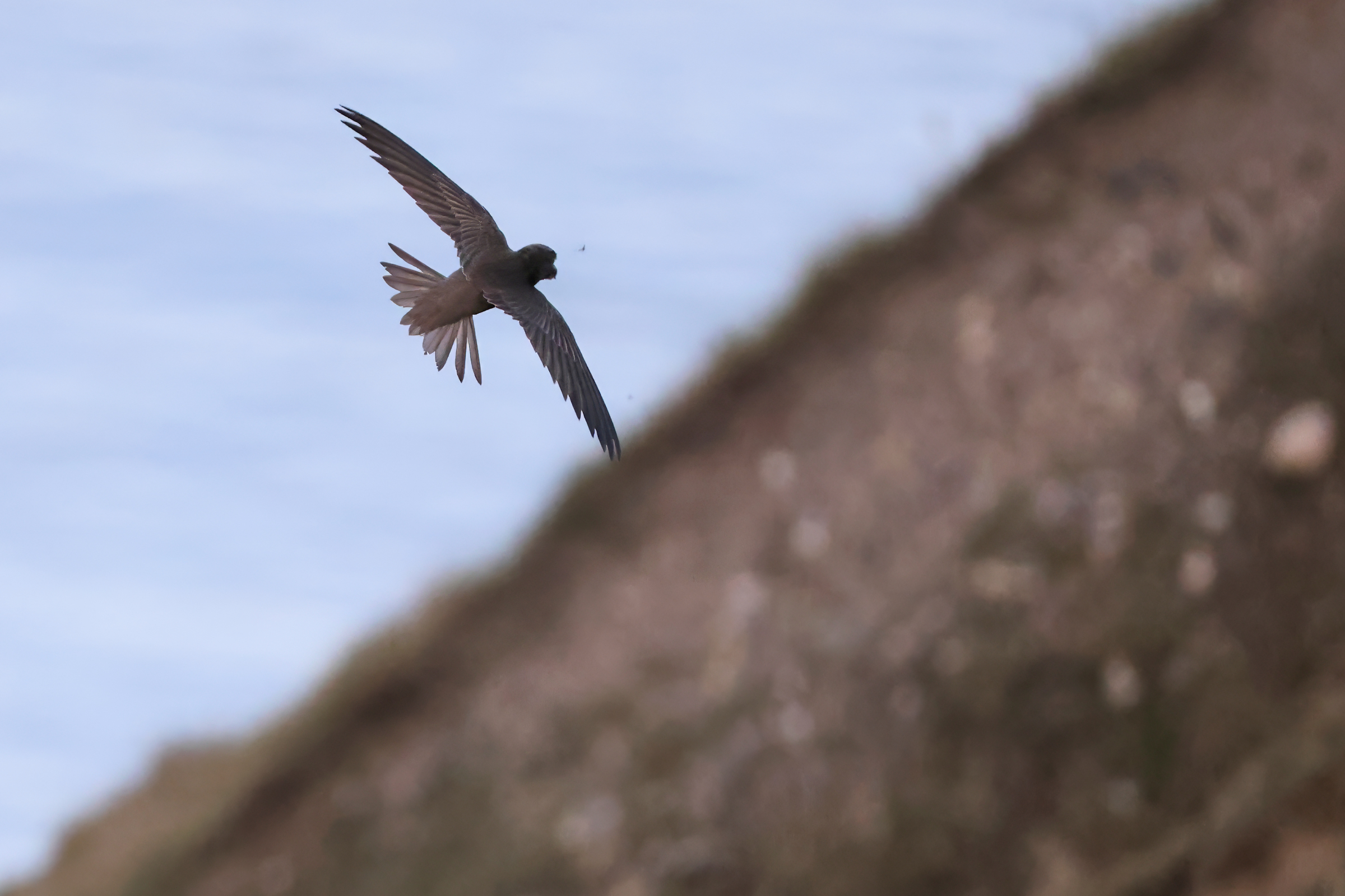 Så gik der en dag og der dukkede faktisk en Gråsejler op i Hanstholm! Dén var jeg ikke ovre for at kigge efter, men da der søndag formiddag blev fundet én ved Bulbjerg rykkede jeg dérop så hurtigt jeg kunne – men kom for sent. Eller ihvertfald var den ikke længere at se – men måske har den bare været et smut ved Svinkløv, for i går var den tilbage, og sammen med nogle af Vejler-folkene kunne jeg nyde denne hyggelige tilføjelse til den lokale fugleliste (og min personlige Danmarks-liste).