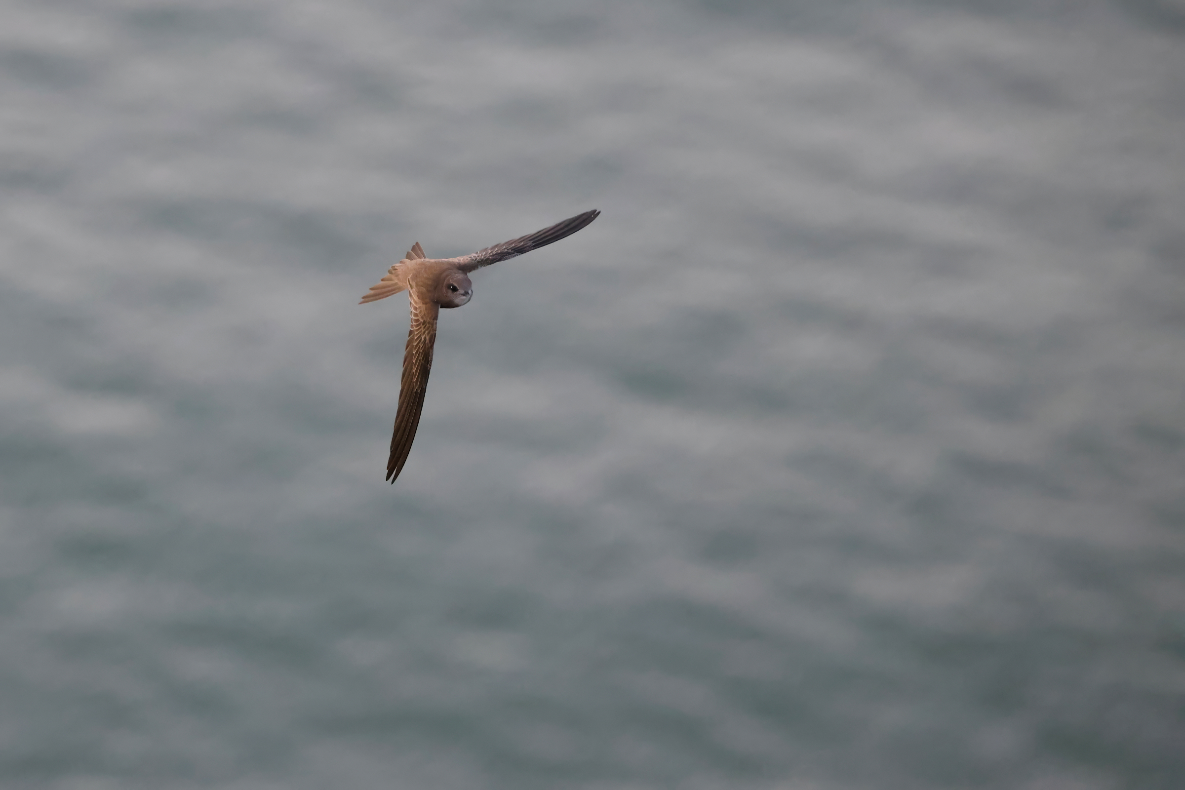 Gråsejler kan jeg ikke sige at jeg er særligt fortrolig med, indtil nu har det været en fugl jeg bare har set ved et fåtal lejligheder når jeg har været ved Middelhavet i sommerhalvåret. Det er en pudsig ting, men denne art som tidligere var en stor sjældenhed, er i de seneste ca. ti år blevet tiltagende regelmæssig, så der nu hvert år i oktober-november dukker nogle stykker op rundt langs vores kyster. Og ofte er det netop ved fremspringende punkter, fyrtårne, havne eller klinter som på Bulbjerg, at de “hænger ud”. Det var en stor fornøjelse i går i det sene eftermiddagslys at nyde fuglen når den – især ved klintens vestlige hjørne – fouragerede helt tæt på. Vi stod oppe og havde den derfor langt det meste af tiden med havet eller klinten som baggrund, men et par gange var den også oppe og vende lige foran os eller hen over hovedet på os, på ned til to-tre meters afstand. Man skulle ikke tro der var mange insekter at leve af sådan en halvkølig novemberdag, men gentagne gange så vi den jage efter en enkelt myg, og hver gang så det ud til at lykkes. Alle sejlere er altid FEDE! – det er luftrummets beherskere over dem alle. Oplevelsen gav lejlighed til at få genopfrisket indtrykket af en meget tyk og kompakt sejler, en anelse langsommere i flugten end Mursejler måske, med dybere vingeslag med svirp!