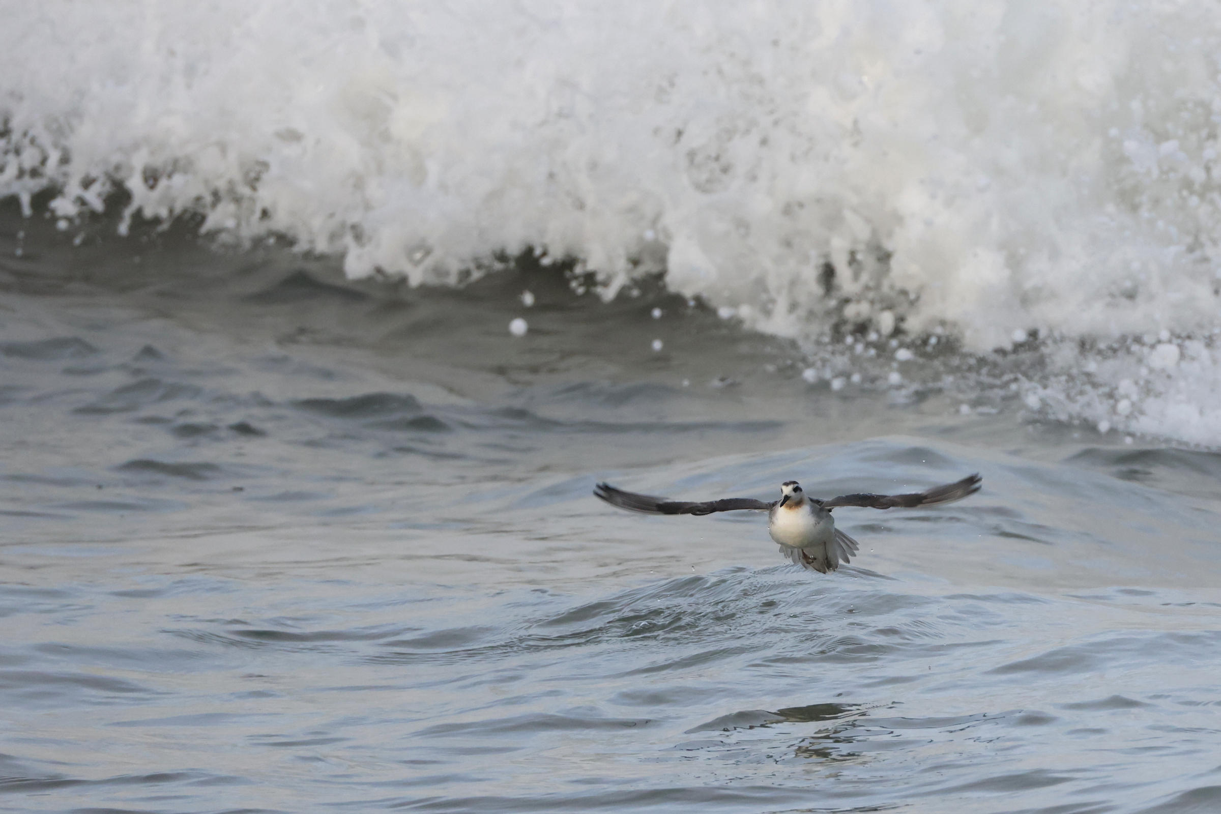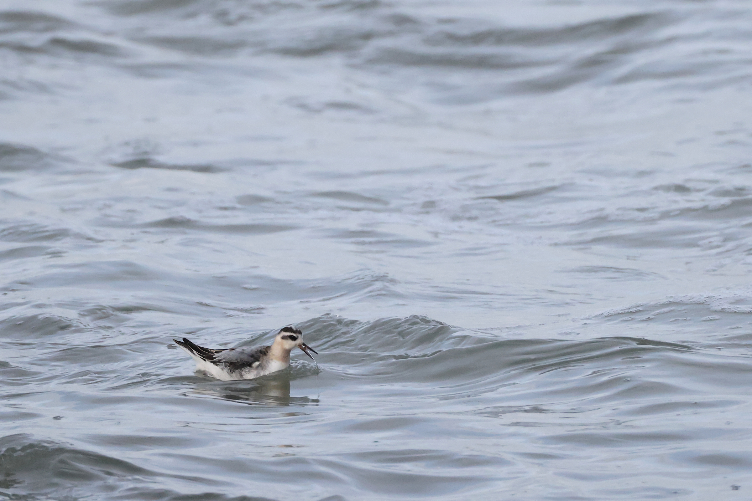 Thorshanen er en art jeg kender både fra det nordlige (Island, Alaska) og fra overvintringsområder sydpå (México, Galápagos) – og det er ALTID en hyggelig fugl som heldigvis også ofte er ligeglad med mennesker, så man har mulighed for at opleve den på tæt hold. Denne fugl svømmede på vestsiden af Roshagemolen tæt på land, hvor der åbenbart samlede sig nogle fødeemner, bittesmå ting, der bliver samlet op fra havoverfladen med det fine næb. Det er et gentaget mønster, at når en Thors. på efterårstrækket kommer forbi Hanstholm, tager den gerne ophold i nogle dage ved molen – så der må være nogle lokale forhold som gør at fødeemnerne bliver koncentreret her. Jeg kunne ikke se, hvad den spiste – men var tæt nok på til at kunne se de fineste detaljer på fuglen, inkl. “svømmelapperne” på tæerne!